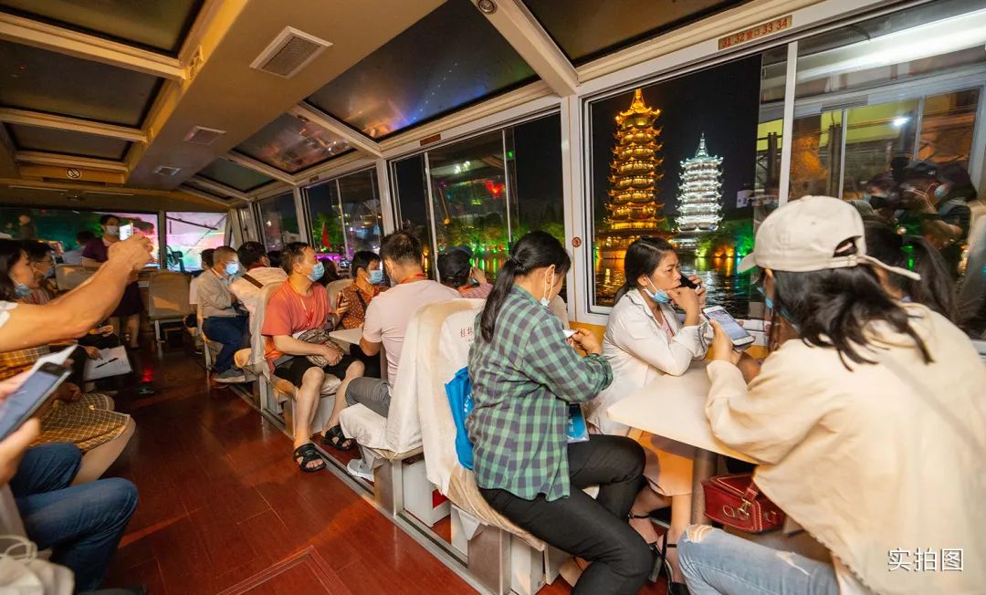 夜幕降臨,興進(jìn)為賓客安排了乘船夜游四湖,飽覽桂林市區(qū)的精華景觀。